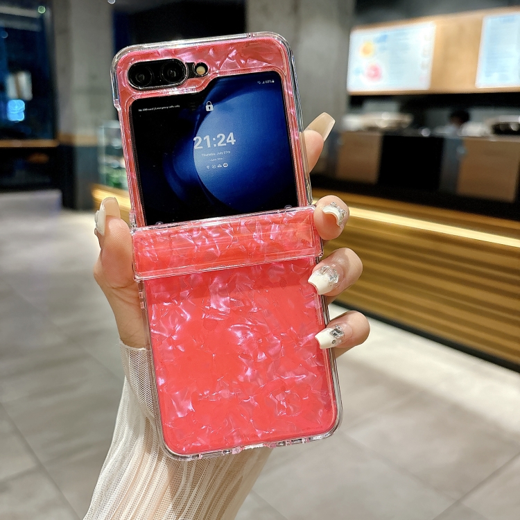 Estuche para Teléfono Samsung Galaxy Z Flip5 5G Juego de Tres Piezas Textura de Concha Nacarada (Rojo)
