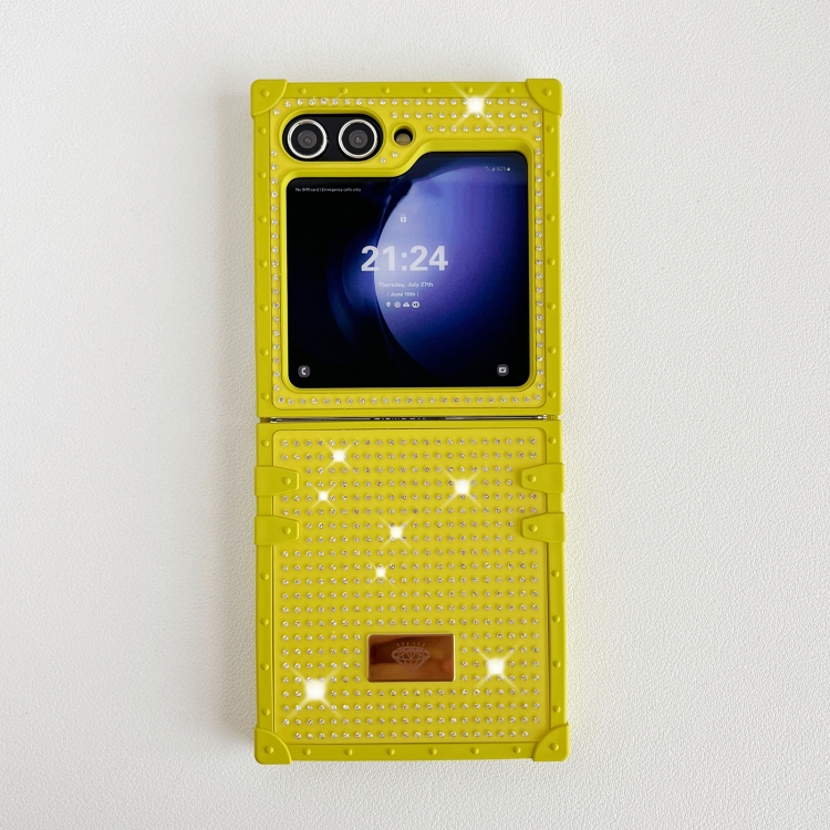 Estuche para Teléfono Samsung Galaxy Z Flip5 5G PC a Prueba de Golpes con Diamantes Completos y Logotipo (Verde)