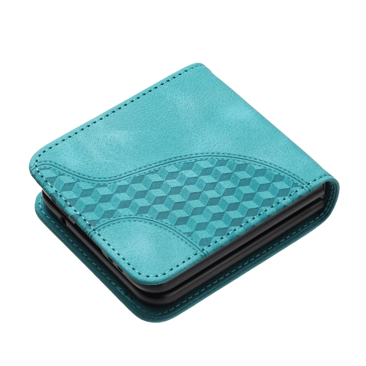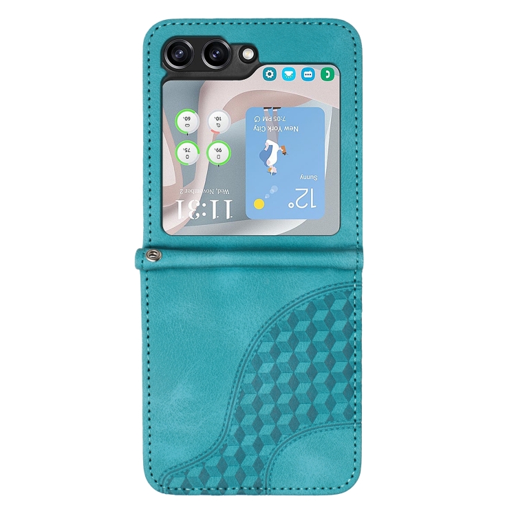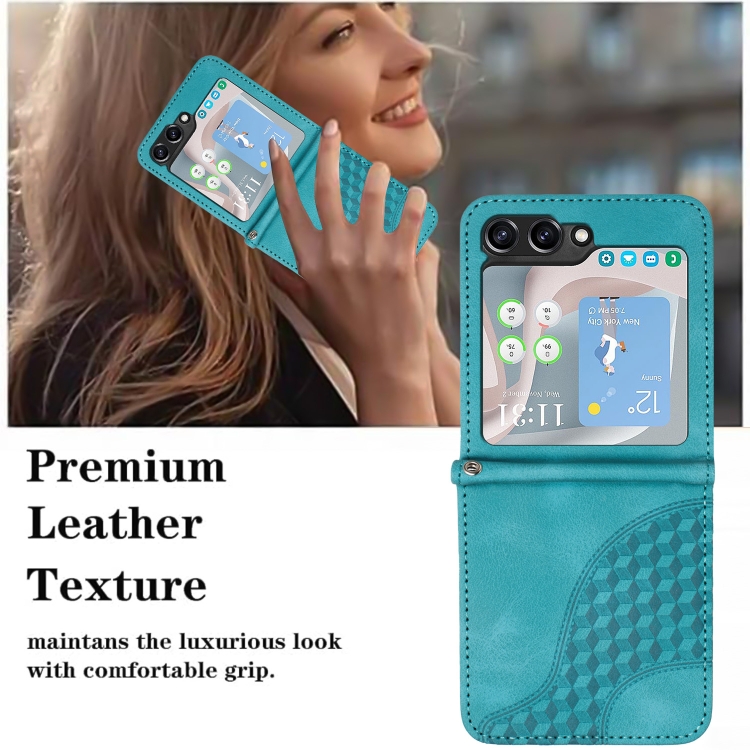Funda para Samsung Galaxy Z Flip5 5G Yx0060 Cuero con Relieve y Cabeza de Elefante con Cordón (Azul Claro)
