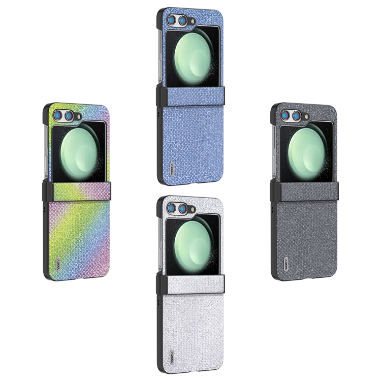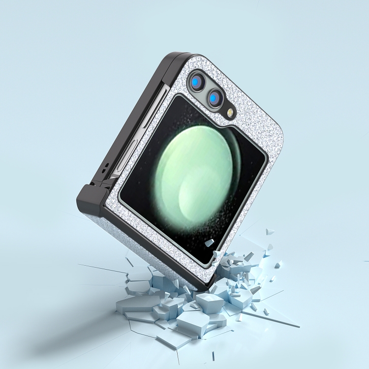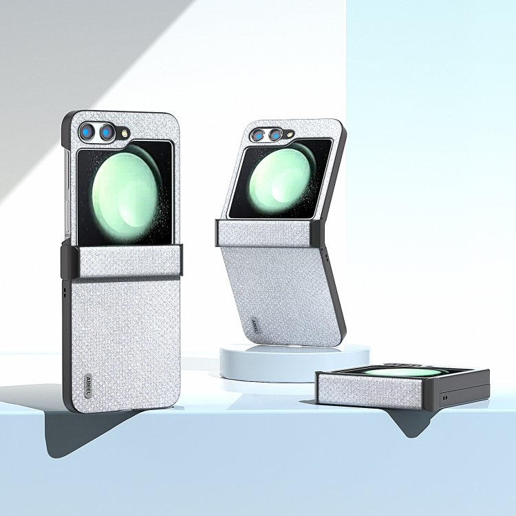Estuche para Teléfono Samsung Galaxy Z Flip5 Abeel Hinge Diamond Series con Borde (Plateado)