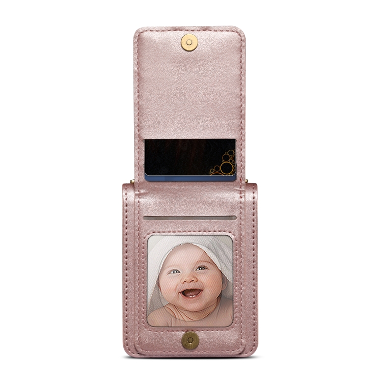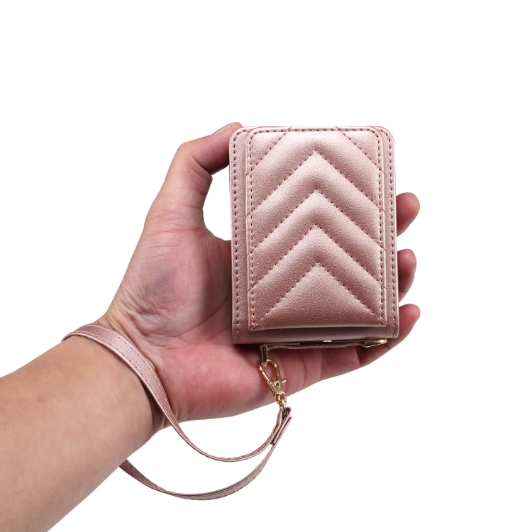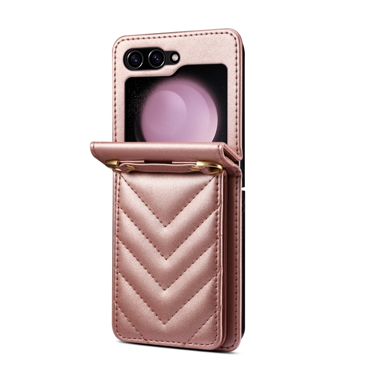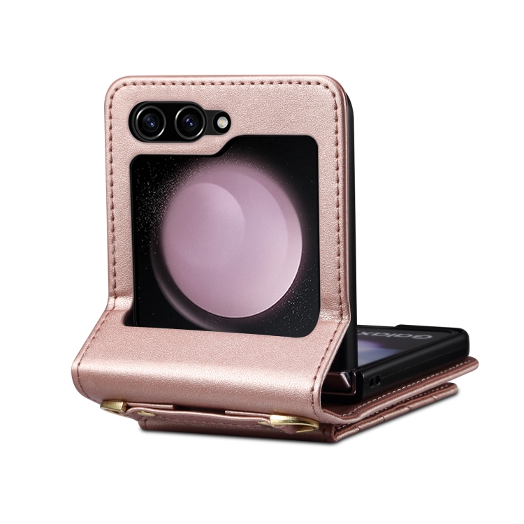 Funda de Cuero Plegable Rombal para Samsung Galaxy Z Flip5 con Cordón Largo (Oro Rosa)