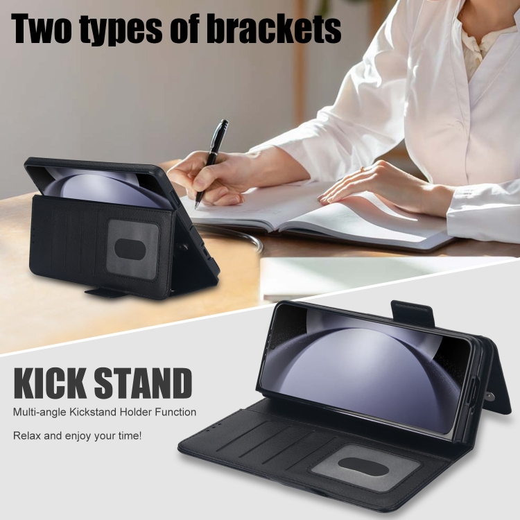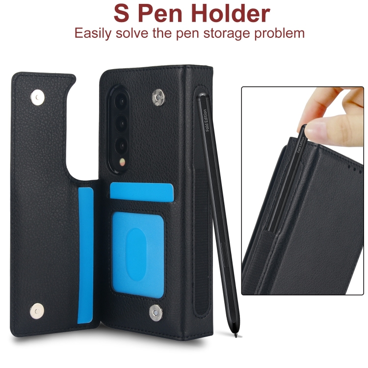 Estuche para Teléfono Samsung Galaxy Z Fold3 Cuero Plegable Multifuncional con Ranura para Bolígrafo (Negro)