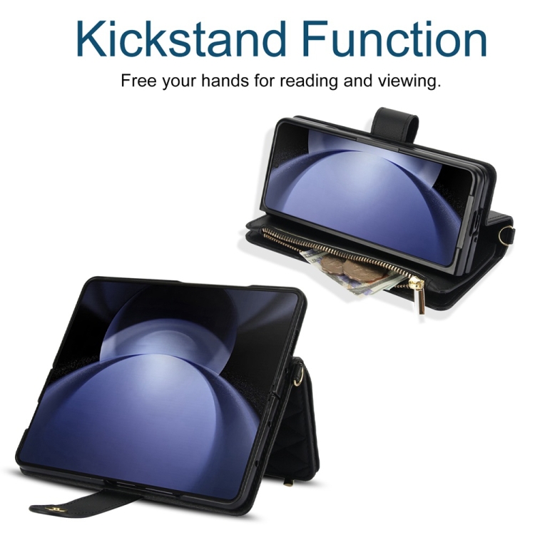 5. Función de billetera para múltiples tarjetas: múltiples ranuras para tarjetas y bolsillos con cremallera para billetera, los compartimentos para efectivo pueden almacenar sus tarjetas de crédito y pequeños billetes diarios.