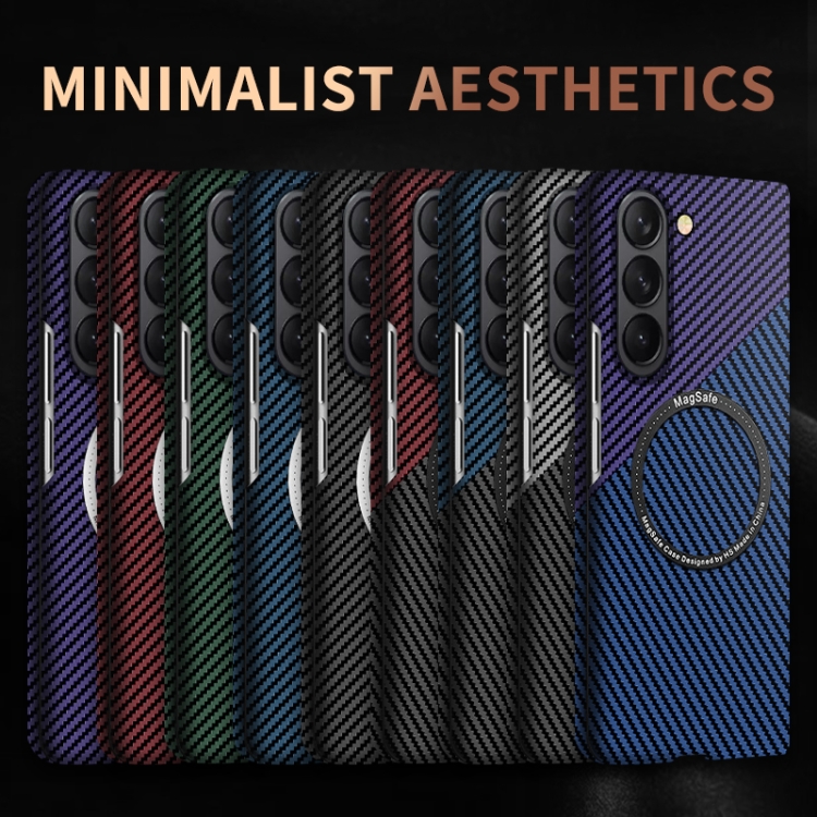 Funda magnética para teléfono Samsung Galaxy Z Fold5 Textura de Fibra de Carbono (Azul Púrpura)