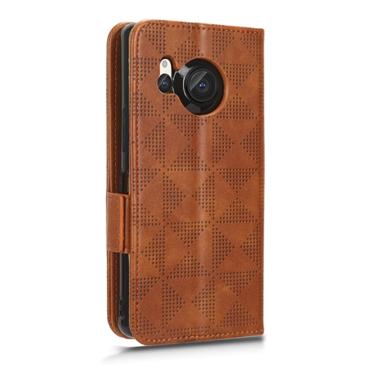 Funda para Sharp Aquos R8 de Cuero con Patrón de Triángulo Simétrico (Marrón)