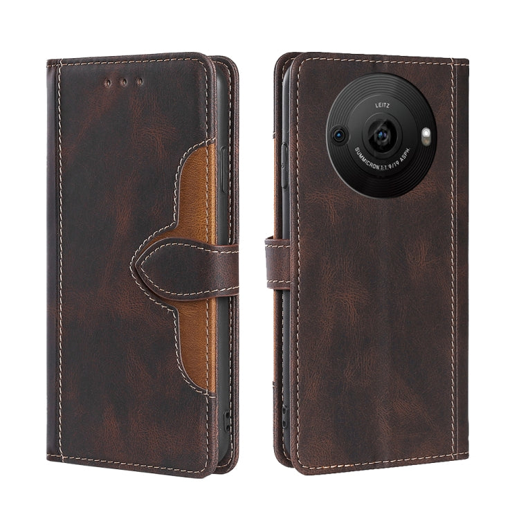 Funda de Cuero para Sharp Aquos R8 Pro Sh-51 Skin Feel con Hebilla Magnética (Marrón)