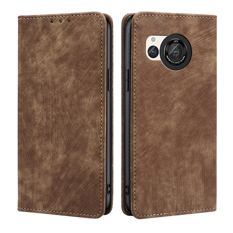 Funda de Cuero Magnética para Sharp Aquos R8 Sh-52D con RFID y Cepillo Antirrobo (Marrón)