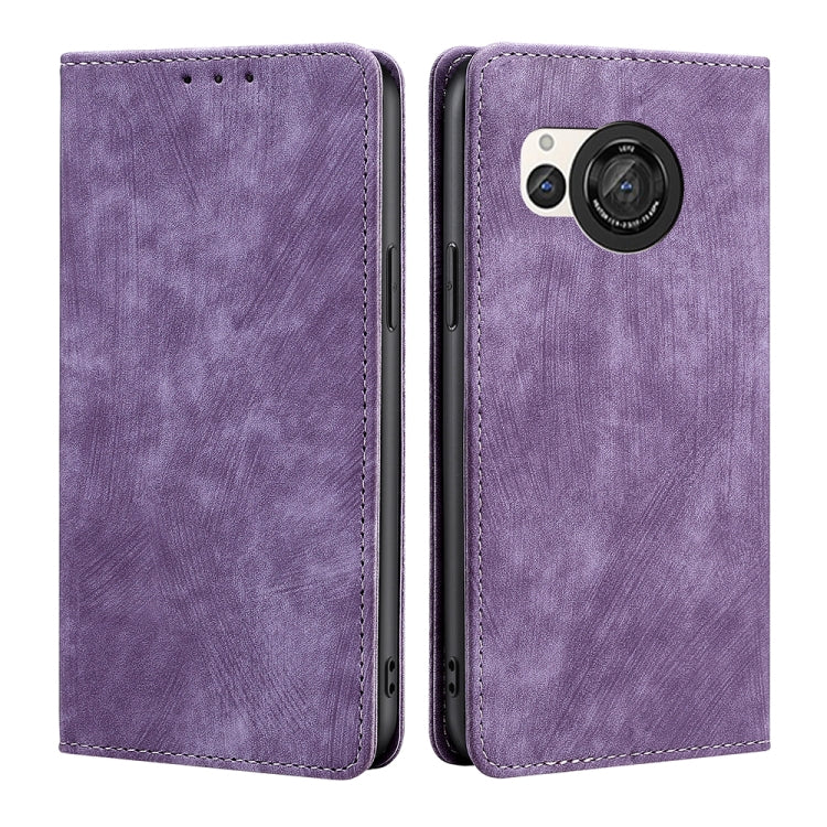 Funda de Cuero Magnética para Sharp Aquos R8 Sh-52D con Protección RFID y Cepillo Antirrobo (Púrpura)