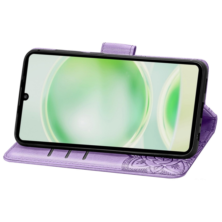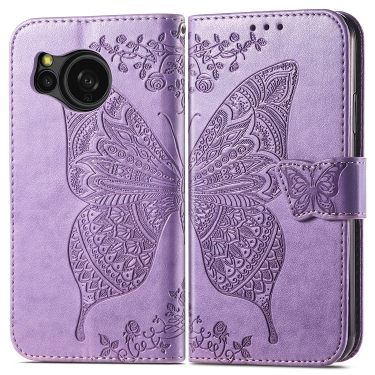 Funda para Sharp Aquos Sense8 de Cuero con Relieve de Flor y Mariposa (Púrpura)