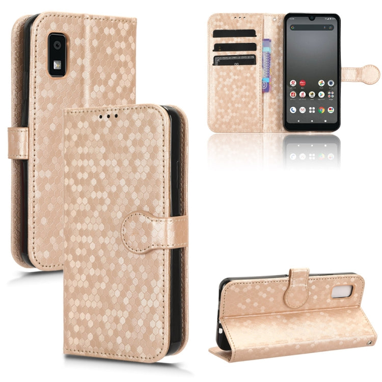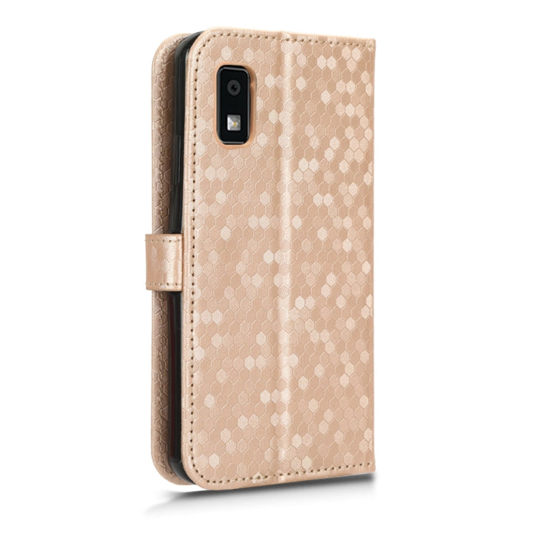 Funda de Cuero para Sharp Aquos Wish 3 con Textura de Punto de Panal (Oro)