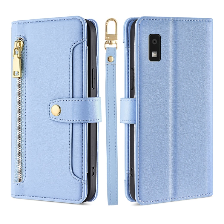 Funda de Cuero para Sharp Aquos Wish 3 Lite con Textura Sheep, Crossbody, Zipper, Azul