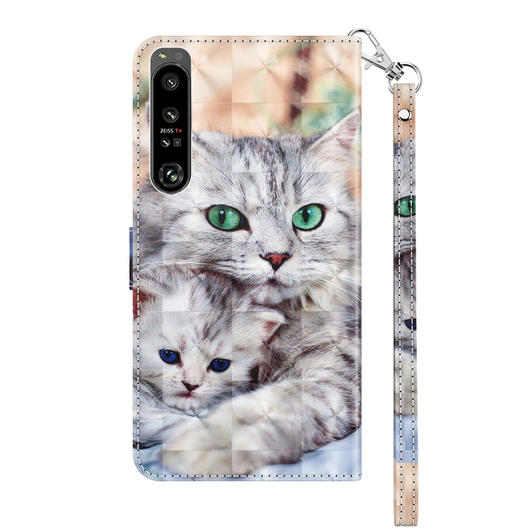Estuche para Sony Xperia 1 IV de Cuero Pintado en 3D Dos Gatos Amorosos
