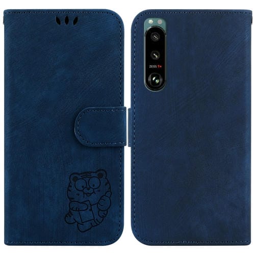 Funda para Sony Xperia 5 III de Cuero con Relieve Little Tiger (Azul Oscuro)