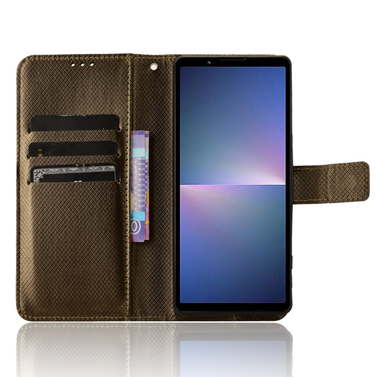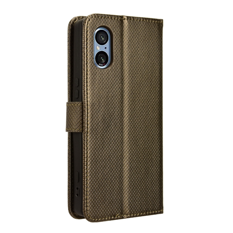 Funda para Sony Xperia 5 V (2023) de Cuero con Textura de Diamante (Marrón)