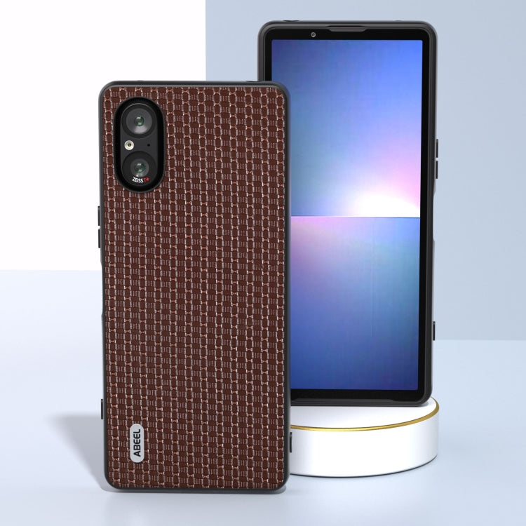 Funda para Sony Xperia 5 V Abeel Cuero Genuino con Borde Negro (Café)