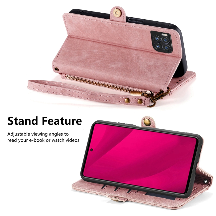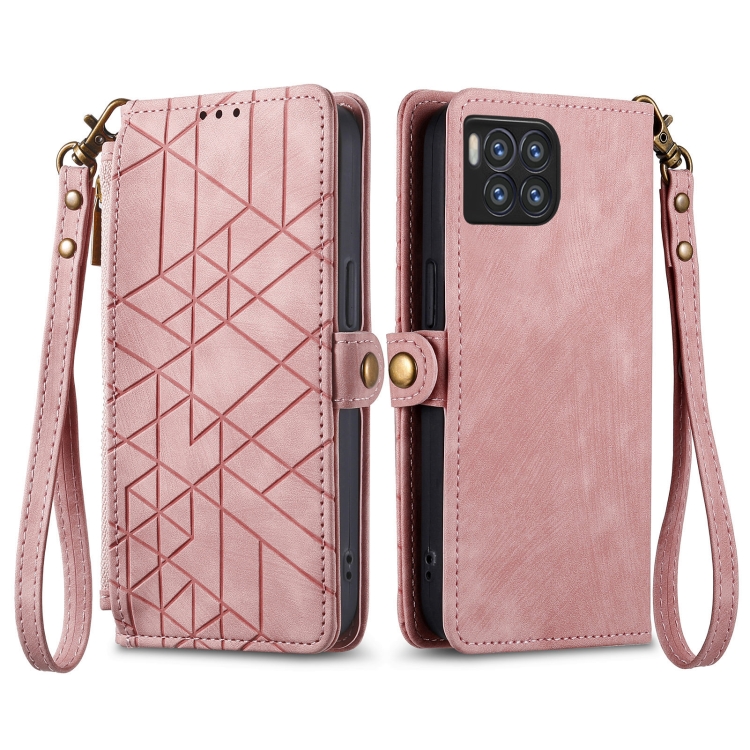 Funda de Cuero para T-Mobile Revvl 7 Pro 5G con Hebilla Lateral y Billetera Geométrica (Rosa)