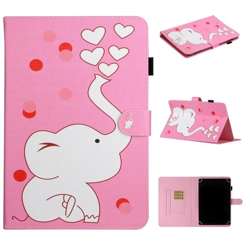 Funda para Tablet PC Universal 10 Pulgadas Cuero PU con Soporte y Ranura para Tarjeta (Loving Elephant)