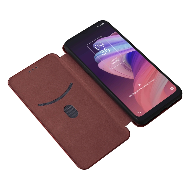 Funda de Cuero Magnético para TCL 10 Se con Ranura para Tarjeta (Marrón)