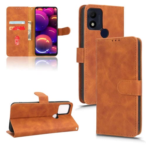 Funda Flip de Cuero para TCL 305I Skin Feel Magnetic (Marrón)