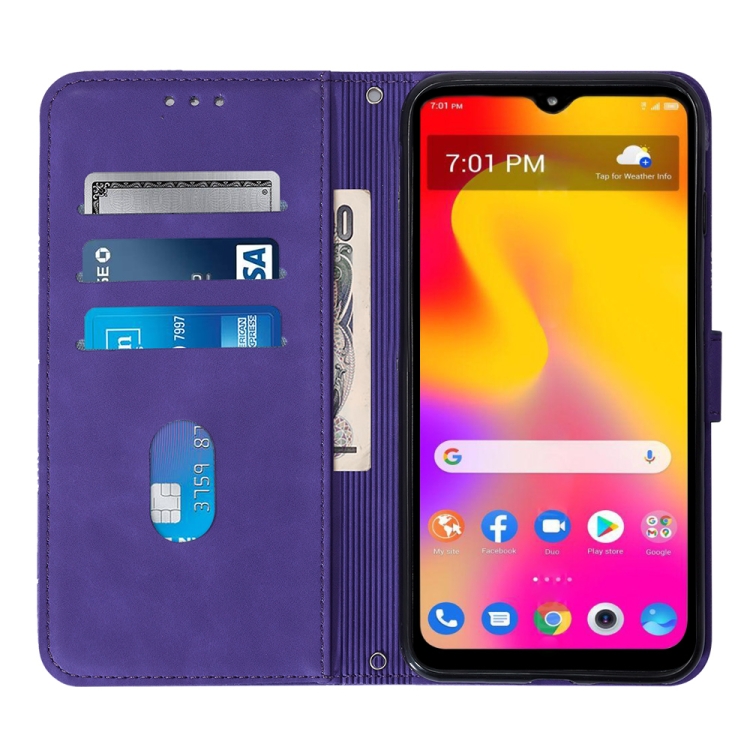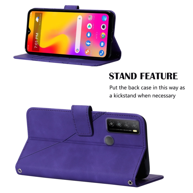 Funda de Cuero Crossbody 3D para TCL 30Xl T701Dl con Tapa en Relieve (Púrpura)
