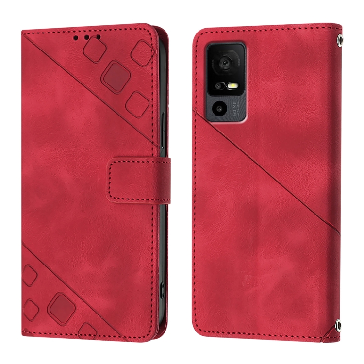 Funda de Cuero para TCL 40 R 5G Skin Feel en Relieve (Rojo)