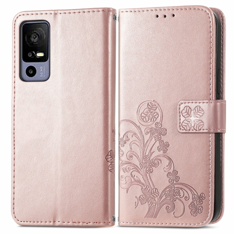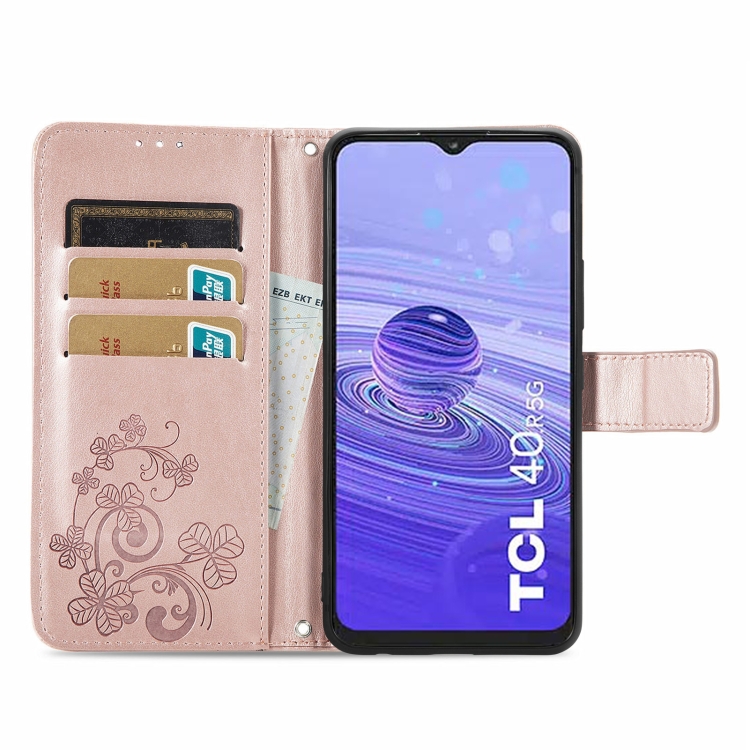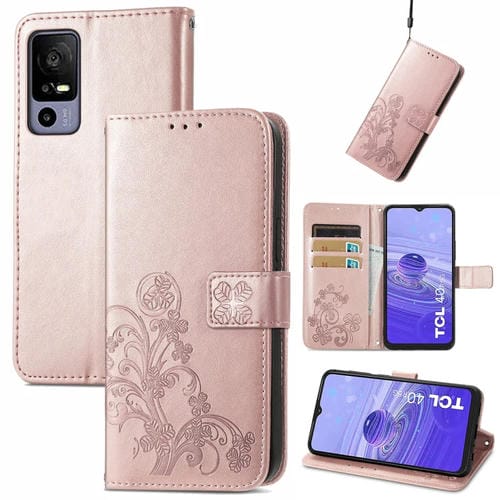 Estuche para TCL 40R de Cuero con Hebilla en Relieve y Cierre de Cuatro Hojas (Oro Rosa)