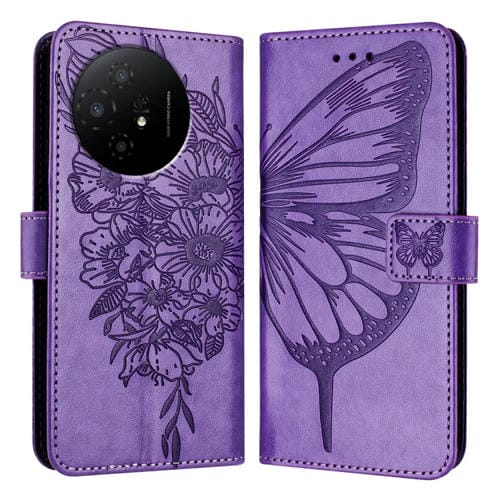 Funda de Cuero para TCL 50 XL 5G con Mariposa en Relieve (Púrpura Claro)