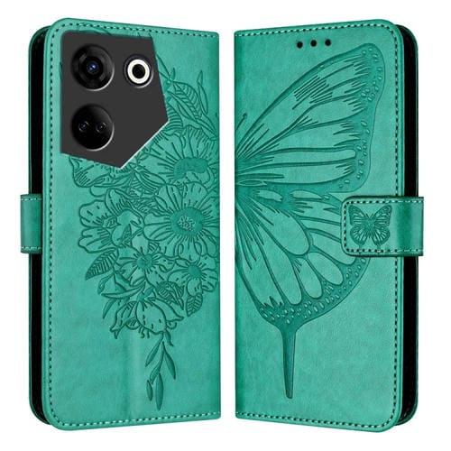 Funda de Cuero Tecno Camon 20/20 Pro 4G con Mariposa en Relieve (Verde)