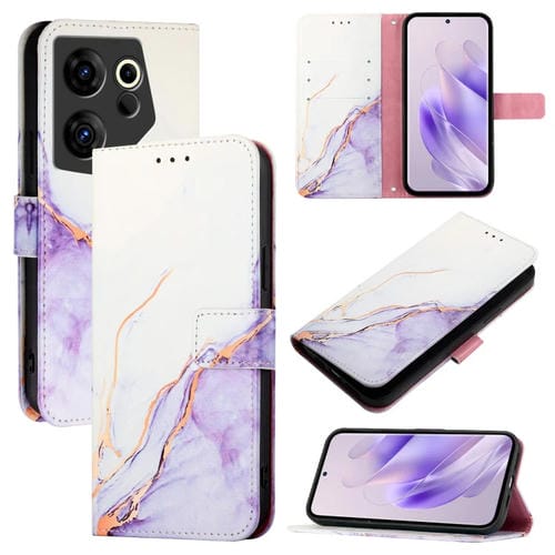 Funda para Tecno Camon 20 Premier 5G Ck9N Pt003 de Cuero con Tapa y Patrón Mármol (Blanco Púrpura)