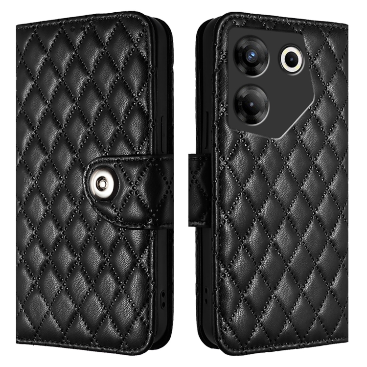 Funda para Tecno Camon 20 Pro 5G de Cuero con Tapa Textura Romboidal y Cordón (Negro)