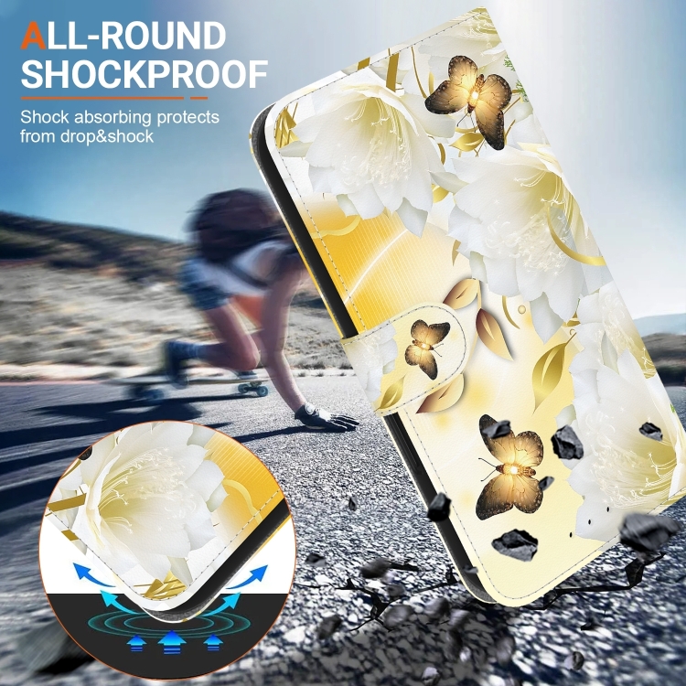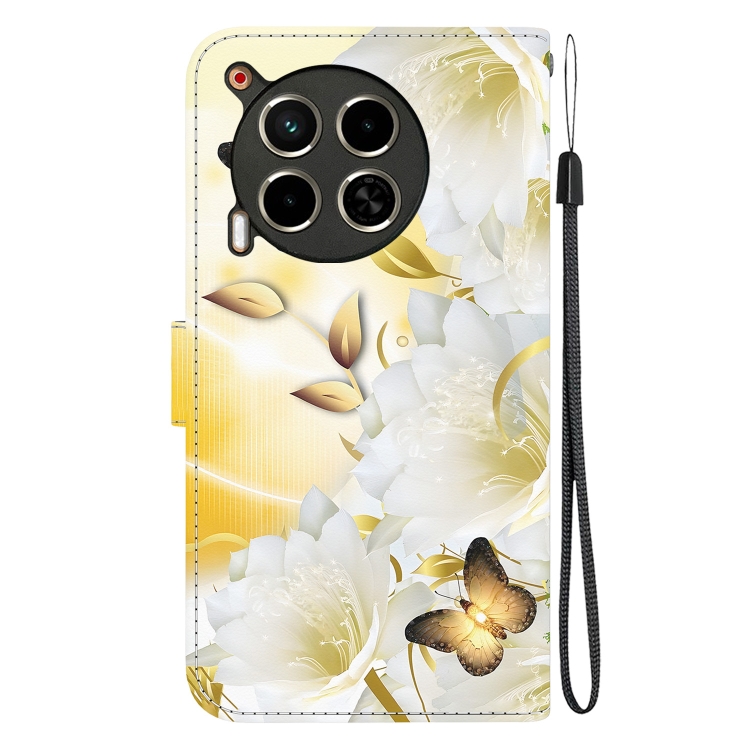 Funda de Cuero para Tecno Camon 30 4G y 30 5G Cl6 Cl7 con Dibujo Epiphyllum Mariposa Dorada