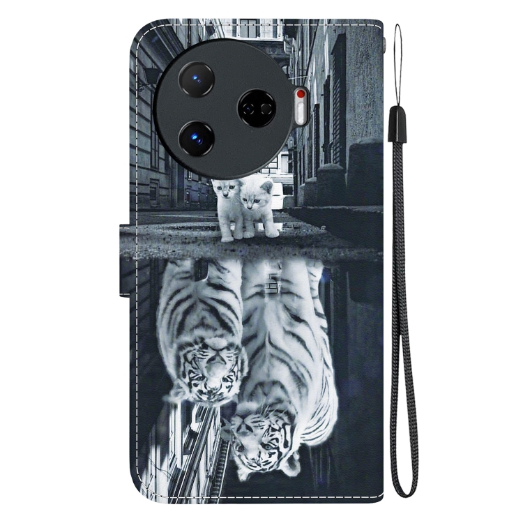Funda de Cuero para Tecno Camon 30 Pro Cl8 con Dibujo Coloreado y Textura de Cristal (Reflejo de Tigre Gato)