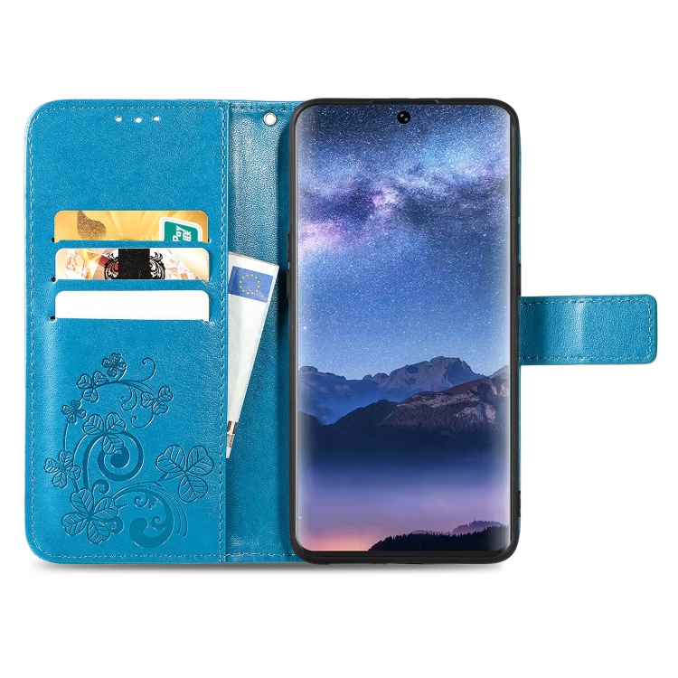 Funda para Teléfono + Tecno Itel S23 + Cuero + Hebilla en Relieve + Cierre de Cuatro Hojas (Azul)