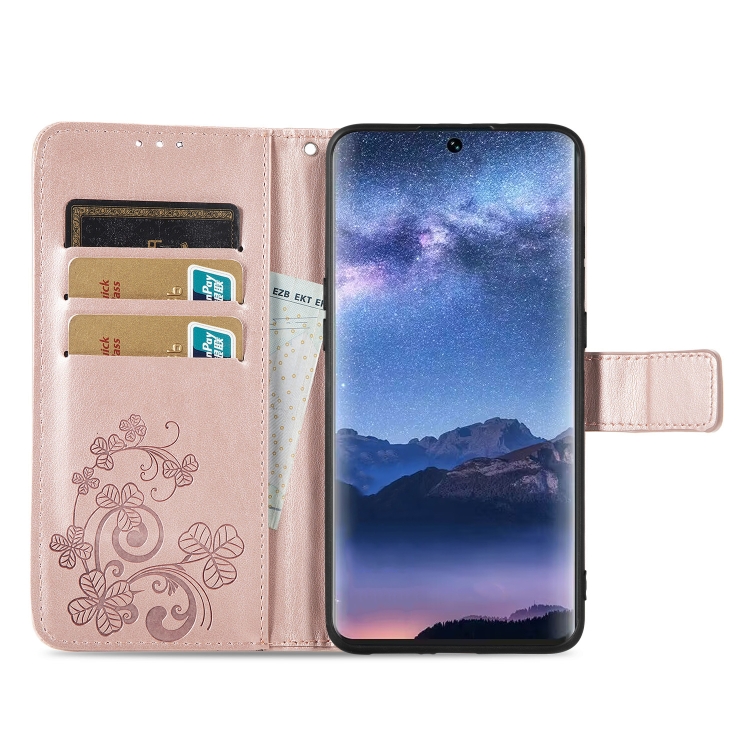 Funda para Tecno Itel S23 de Cuero con Hebilla y Cierre de Cuatro Hojas (Oro Rosa)