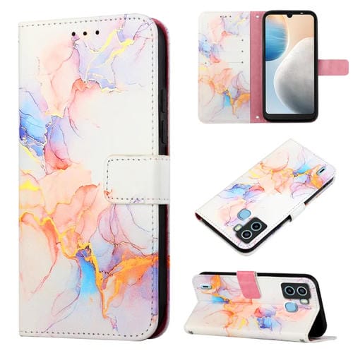 Funda de teléfono Tecno Pop 6 Pt003 con Tapa de Cuero y Patrón Mármol (Blanco Mármol)
