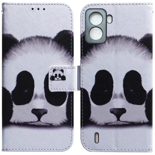Funda de Cuero para Tecno Pop 6 con Dibujo Coloreado y Sin Huellas (Panda)