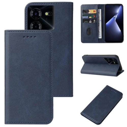 Funda de Cuero para Tecno Pova 5 Pro con Cierre Magnético (Azul)