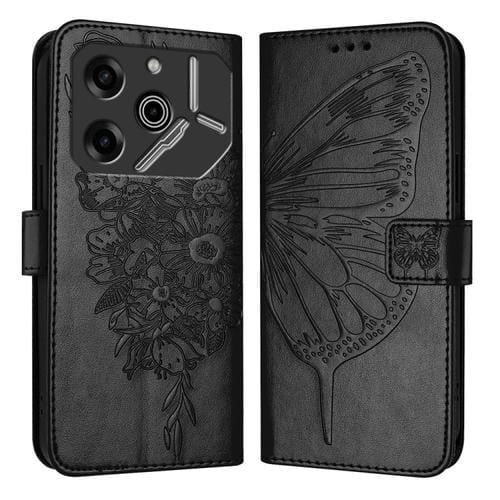 Funda de Cuero para Tecno Pova 6 5G con Mariposa en Relieve (Negro)