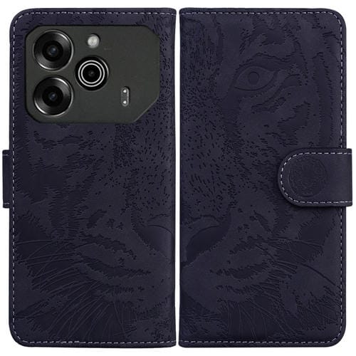 Funda de Cuero con Tapa para Tecno Pova 6 y Pova 6 Pro con Patrón Tigre (Negro)
