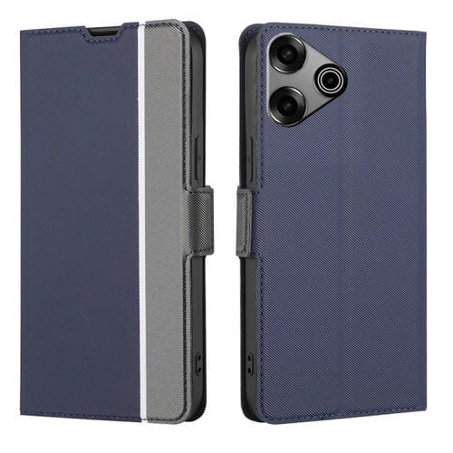 Funda de Cuero para Tecno Pova 6 Pro 5G con Botón Lateral y Textura de Sarga (Azul)