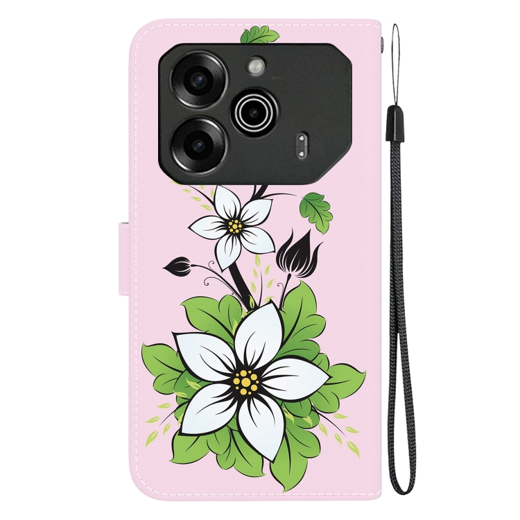 Funda de Cuero para Tecno Pova 6 Pro y Pova 6 con Dibujo Coloreado y Textura de Cristal (Lily)