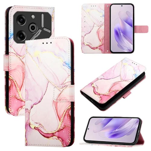 Funda de Cuero con Tapa para Tecno Pova 6 Pro Pt003 con Patrón de Mármol (Oro Rosa)