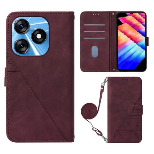 Funda de Cuero para Tecno Spark 10 4G K15K Crossbody 3D con Tapa En Relieve (Rojo Vino)