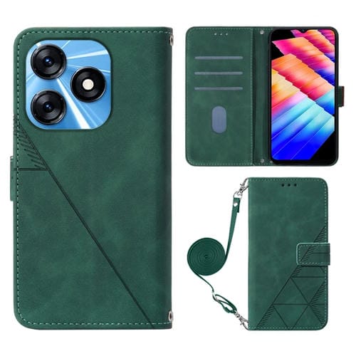 Funda de Cuero para Tecno Spark 10 4G K15K Crossbody 3D con Tapa En Relieve (Verde Oscuro)