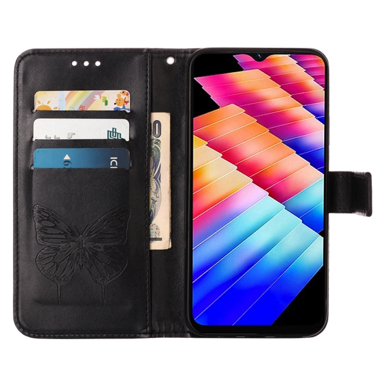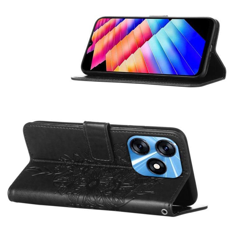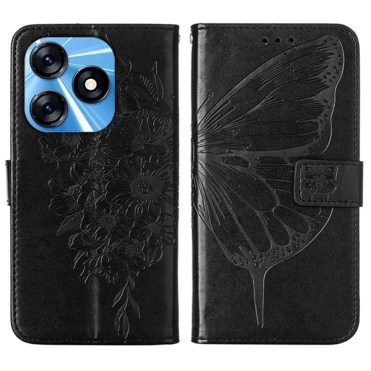 Estuche para Tecno Spark 10 4G / K15K de Cuero con Mariposa en Relieve (Negro)