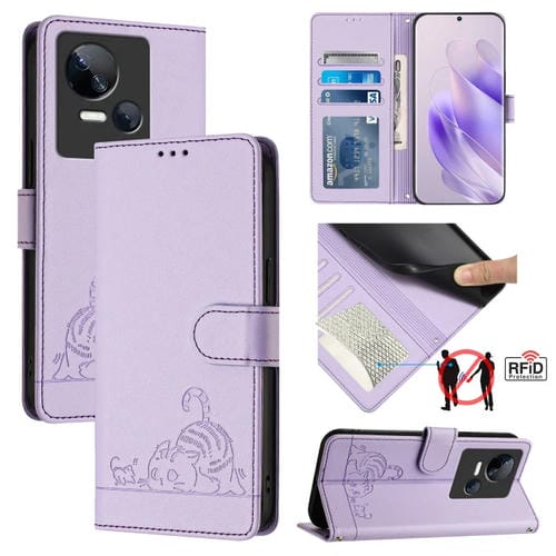 Funda para Tecno Spark 10 5G Cuero Rfid con Patrón en Relieve y Cordón (Púrpura)