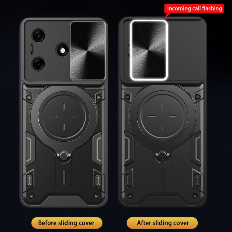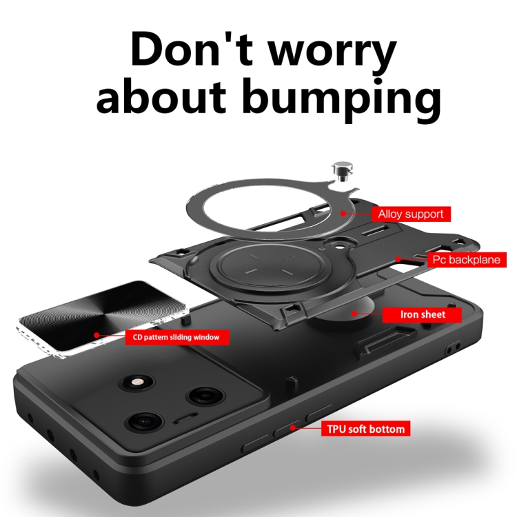 Funda para Teléfono Tecno Spark 10 / Spark 10C con Soporte Magnético y Escudo Deslizante Textura Cd (Rosa)