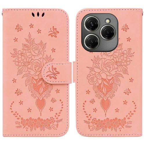 Funda de Cuero para Tecno Spark 20 Pro Butterfly Rose en Relieve (Rosa)