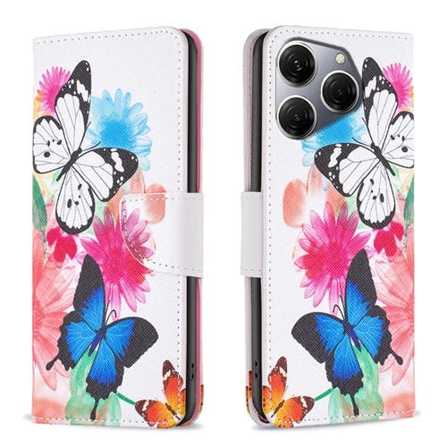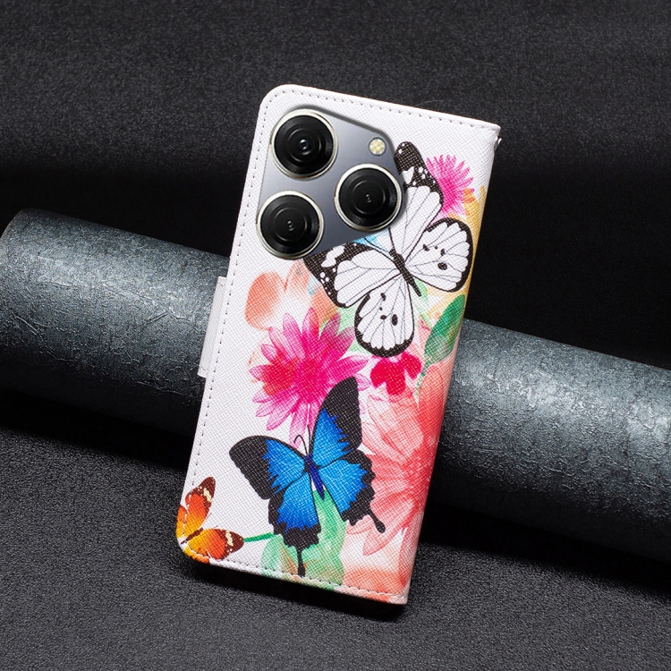 Funda de Cuero para Tecno Spark 20 Pro con Patrón de Dibujo Coloreado (Mariposas)