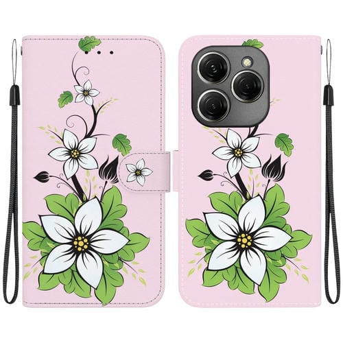 Funda de Cuero para Tecno Spark 20 Pro con Dibujo Coloreado y Textura de Cristal (Lirio)